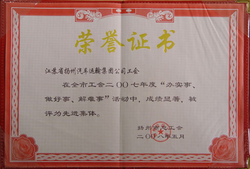 2007年度揚(yáng)州市工會“辦實(shí)事、做好事、解難事”活動先進(jìn)集體