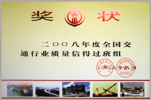 > 2008年度全國交通行業(yè)質(zhì)量信得過班組獎(jiǎng)狀