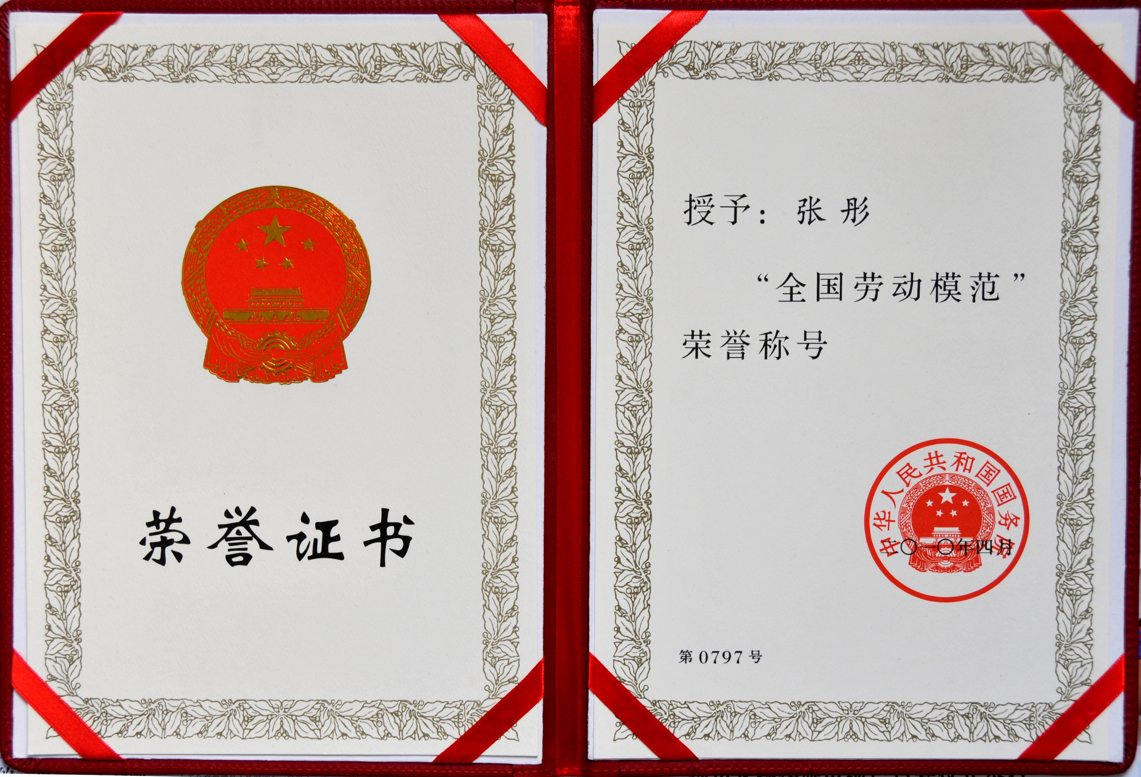 張彤榮獲全國(guó)勞動(dòng)模范稱號(hào)