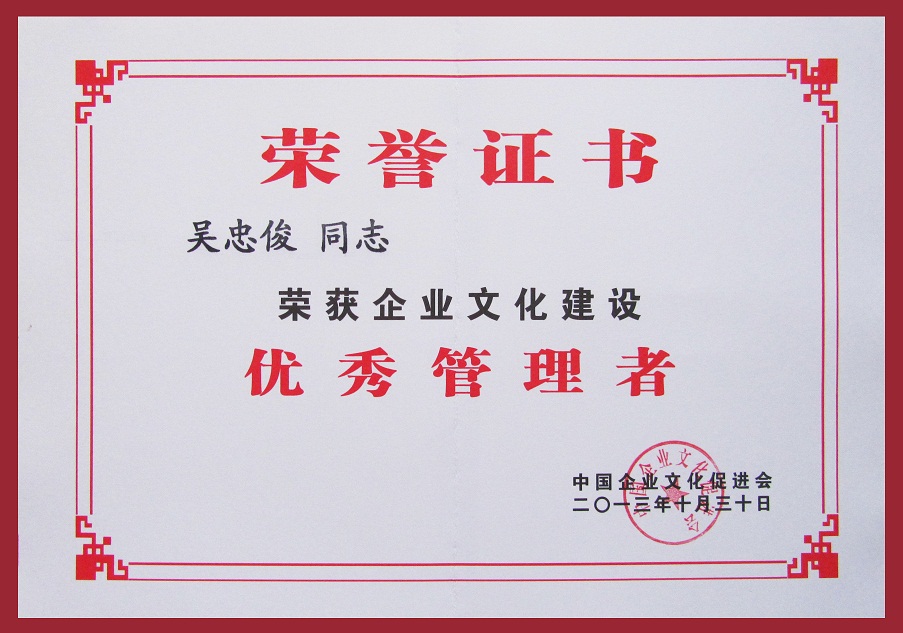 集團(tuán)公司被授予“企業(yè)文化建設(shè)百佳單位”榮譽(yù)稱號;集團(tuán)公司總經(jīng)理、黨委書記吳忠俊被第四屆七次理事會選為中國企業(yè)文化促進(jìn)會副會長,并被評為“企業(yè)文化建設(shè)優(yōu)秀管理者”;集團(tuán)公司企業(yè)文化策劃處處長俆世革被評為“企業(yè)文化建設(shè)先進(jìn)工作者”。我司在企業(yè)文化建設(shè)方面的成績得到了充分肯定。