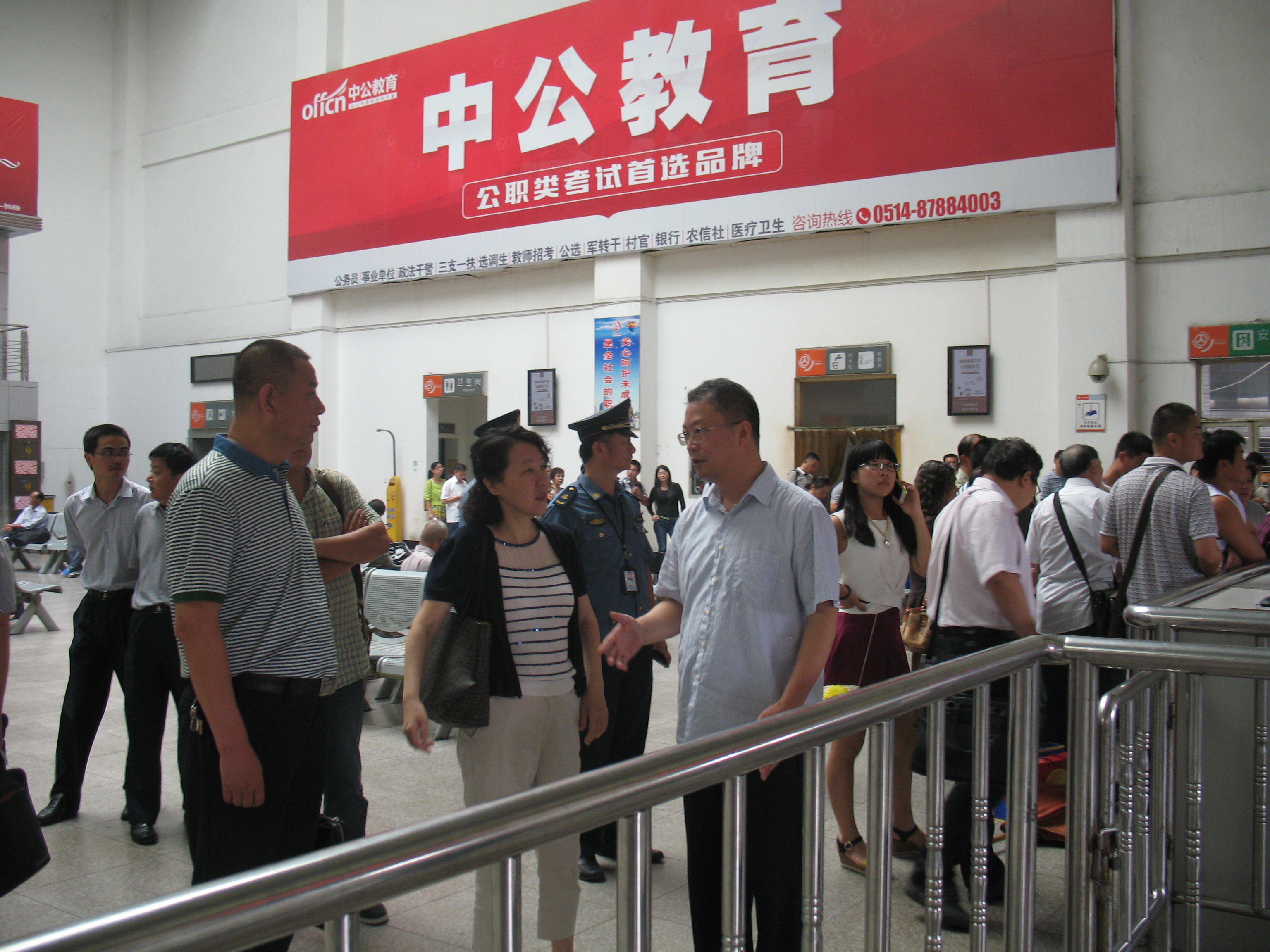 8月15日,省運(yùn)管局陶書(shū)記一行在集團(tuán)公司副總經(jīng)理蔡運(yùn)河的陪同下來(lái)到揚(yáng)州汽車(chē)站檢查青奧前的安保工作。陶書(shū)記先后對(duì)危險(xiǎn)品進(jìn)站情況、南京專線候車(chē)廳、下客區(qū)旅客出站口及監(jiān)控中心等多個(gè)崗位進(jìn)行了檢查,并對(duì)下一步工作進(jìn)行了指導(dǎo)。
