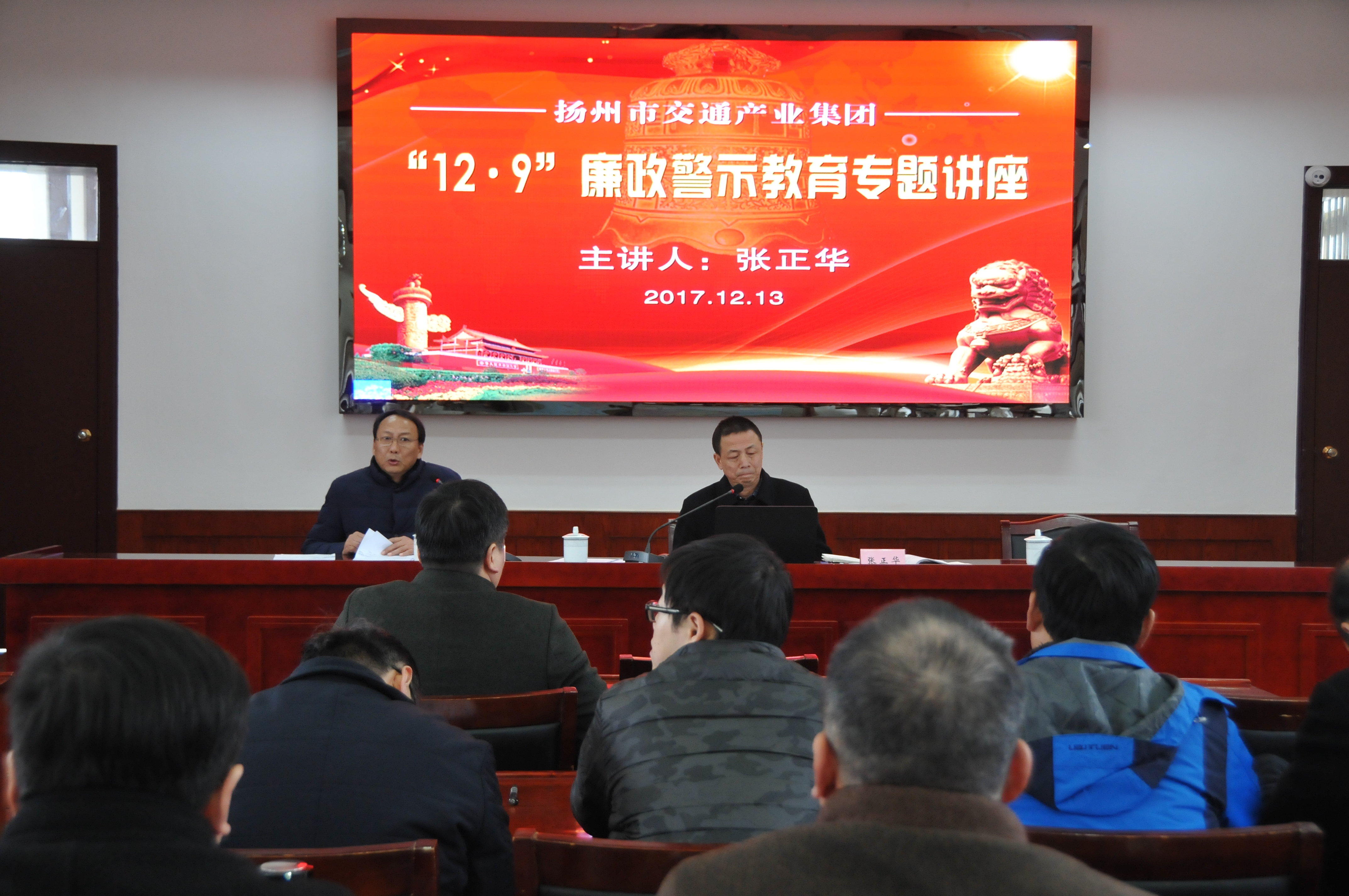 12月13日下午,市交通產(chǎn)業(yè)集團(tuán)在市級(jí)機(jī)關(guān)工委黨校舉辦“12.9”廉政警示教育專題講座;顒(dòng)由交通產(chǎn)業(yè)集團(tuán)黨委副書記王寧生主持,邀請(qǐng)市紀(jì)委第十派駐紀(jì)檢組組長(zhǎng)張正華主講,系統(tǒng)內(nèi)黨員干部近百人現(xiàn)場(chǎng)聆聽講座。揚(yáng)汽集團(tuán)總經(jīng)理、黨委書記曹遠(yuǎn)志等班子成員及各部門、單位黨政負(fù)責(zé)人30余人參加活動(dòng)。