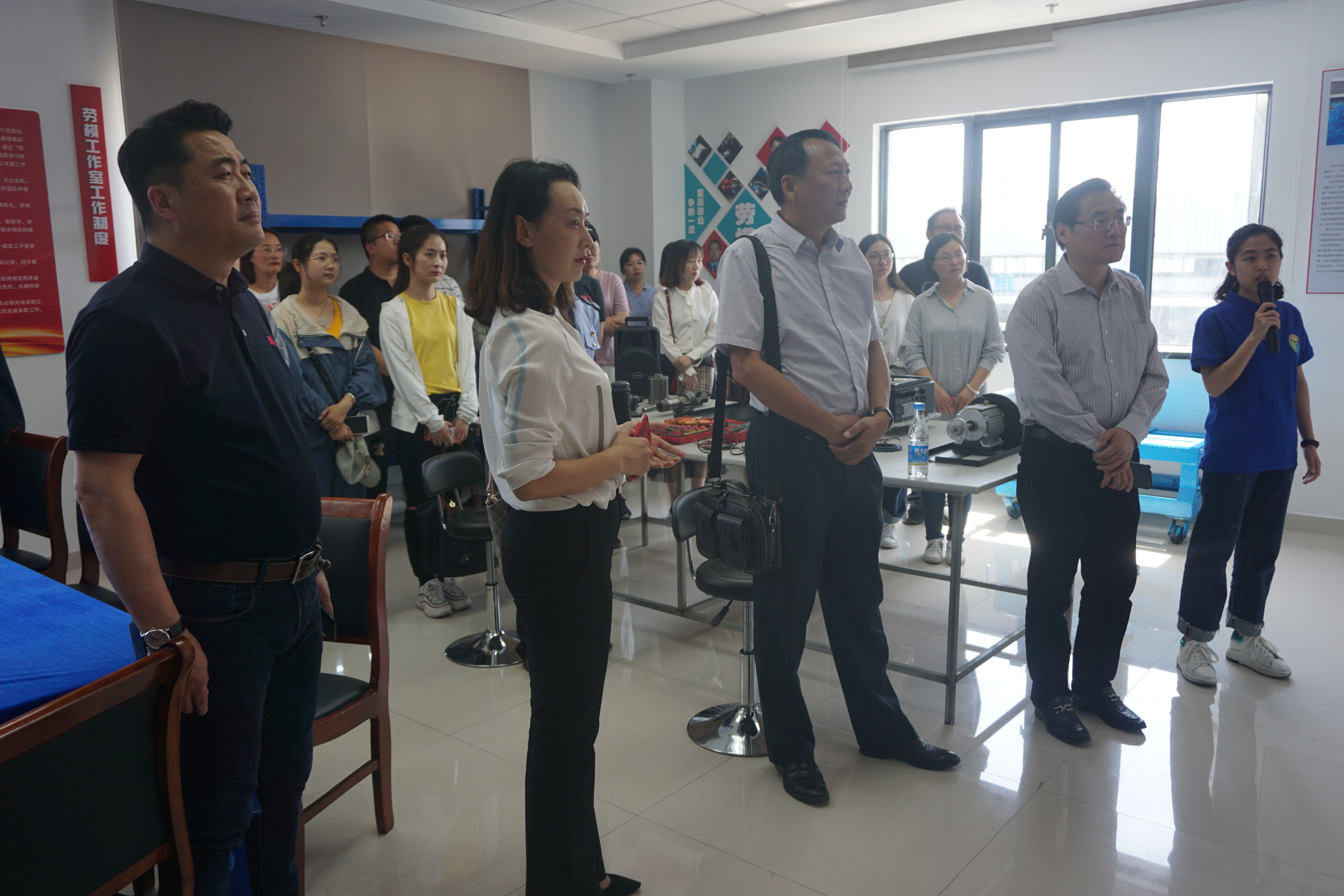上午,青年骨干跟隨跟班勞模師父進行實崗體驗學(xué)習(xí)。下午,勞模們和青年骨干在國資委副調(diào)研員王寧生、市交通產(chǎn)業(yè)集團黨委辦主任呂進、副主任杜璽瓊的帶領(lǐng)下,來到修理廠,實地參觀了揚汽集團修理廠勞模創(chuàng)新工作室,通過現(xiàn)場介紹,使廣大青年骨干對勞模創(chuàng)新工作室的工作理念、創(chuàng)建成果、工作實效、機制載體等方面有了具體的認識,對勞模創(chuàng)新工作室在加速職工成才、技術(shù)創(chuàng)新等方面所發(fā)揮的引領(lǐng)作用有了全新的理解。
