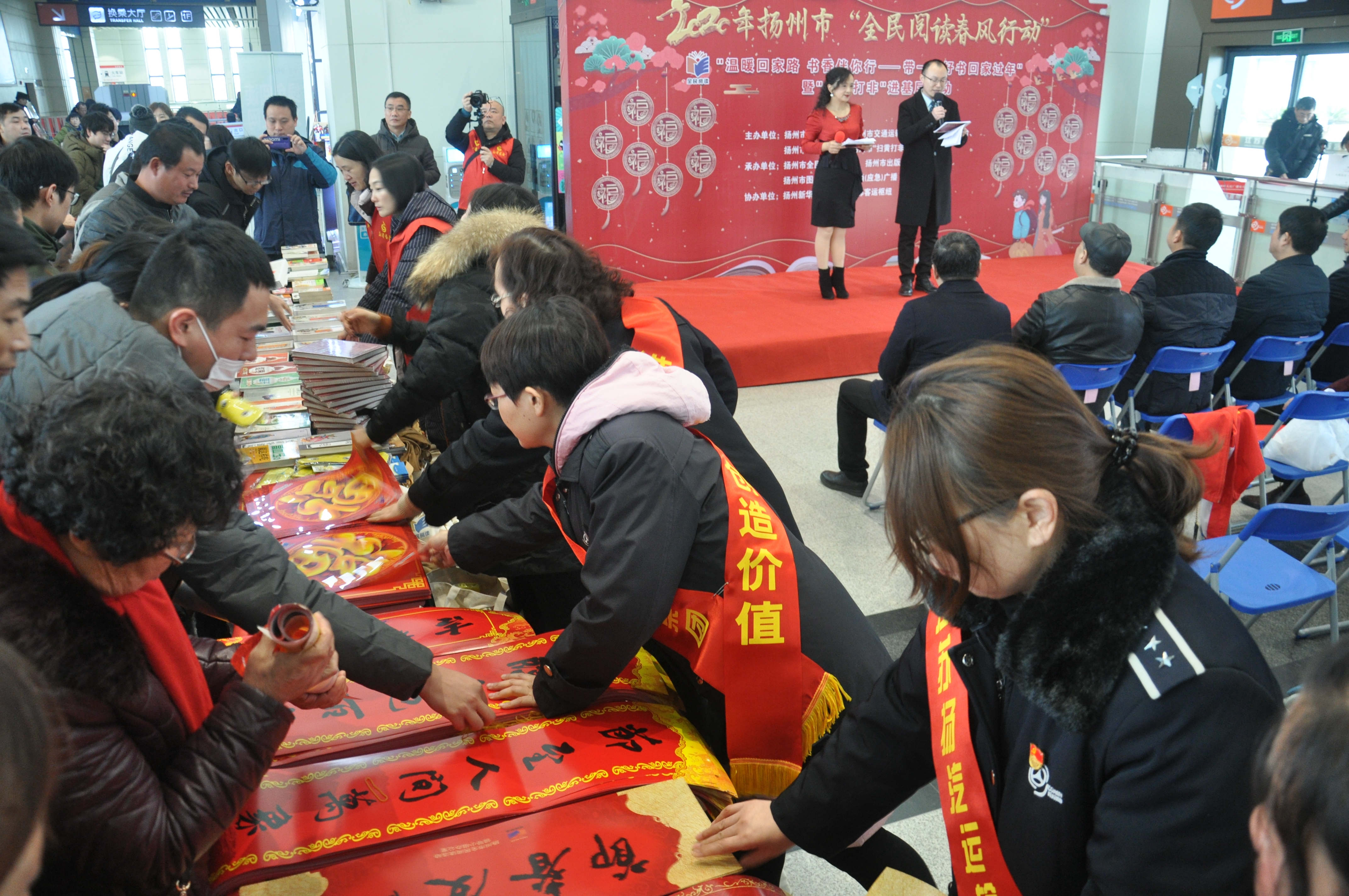 2020年1月14日上午,揚(yáng)州市“全民閱讀春風(fēng)行動”暨“掃黃打非”進(jìn)基層活動在揚(yáng)州汽車站候車大廳隆重舉行。