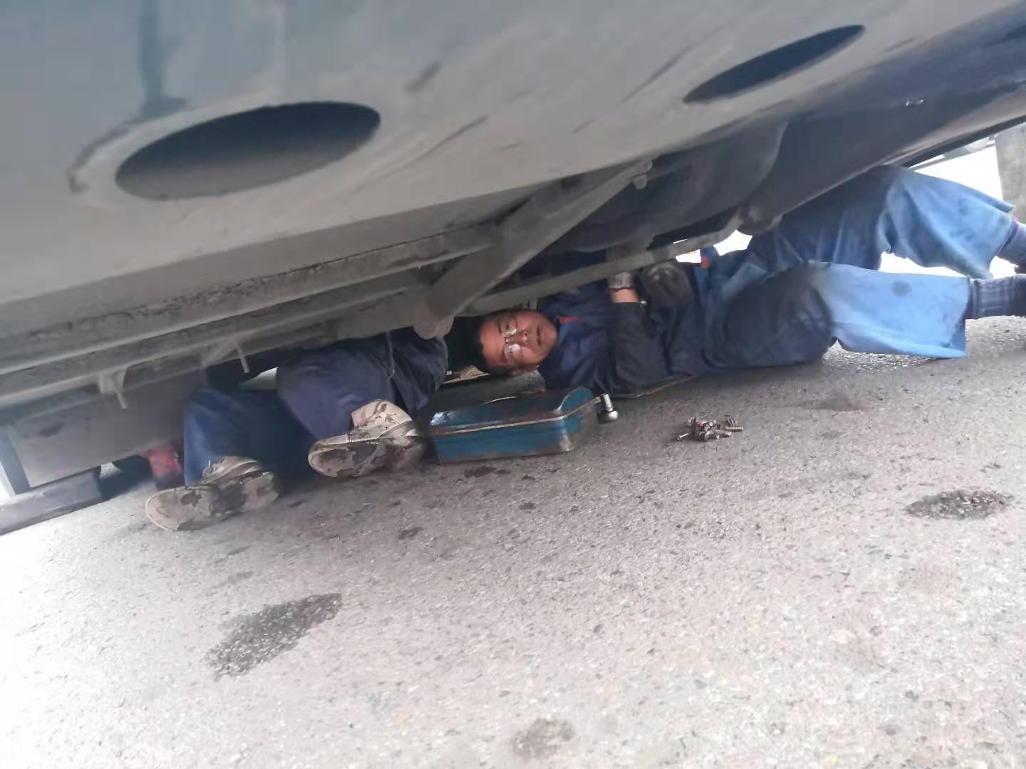 11月21日上午客服總調(diào)親自帶隊,修理廠派出維修精英4人,于11:30抵達。此時天空不作美,寒風刺骨摻和冰冷雨水,搶修環(huán)境更為惡劣,為盡快恢復(fù)班次,師傅們顧不上吃飯,便開始搶修工作,從變速箱附件拆卸、安裝,變速箱落地、吊裝,分離軸承更換、潤滑,每個步驟環(huán)節(jié)都井然有序,連續(xù)作業(yè)3小時后,于下午14:30搶修成功。此時,師傅們才放心的吃了飯,穿著濕透的工作服返回揚州。他們在平凡的工作崗位上,用辛勤的汗水,展現(xiàn)了揚汽人默默奉獻的精神。