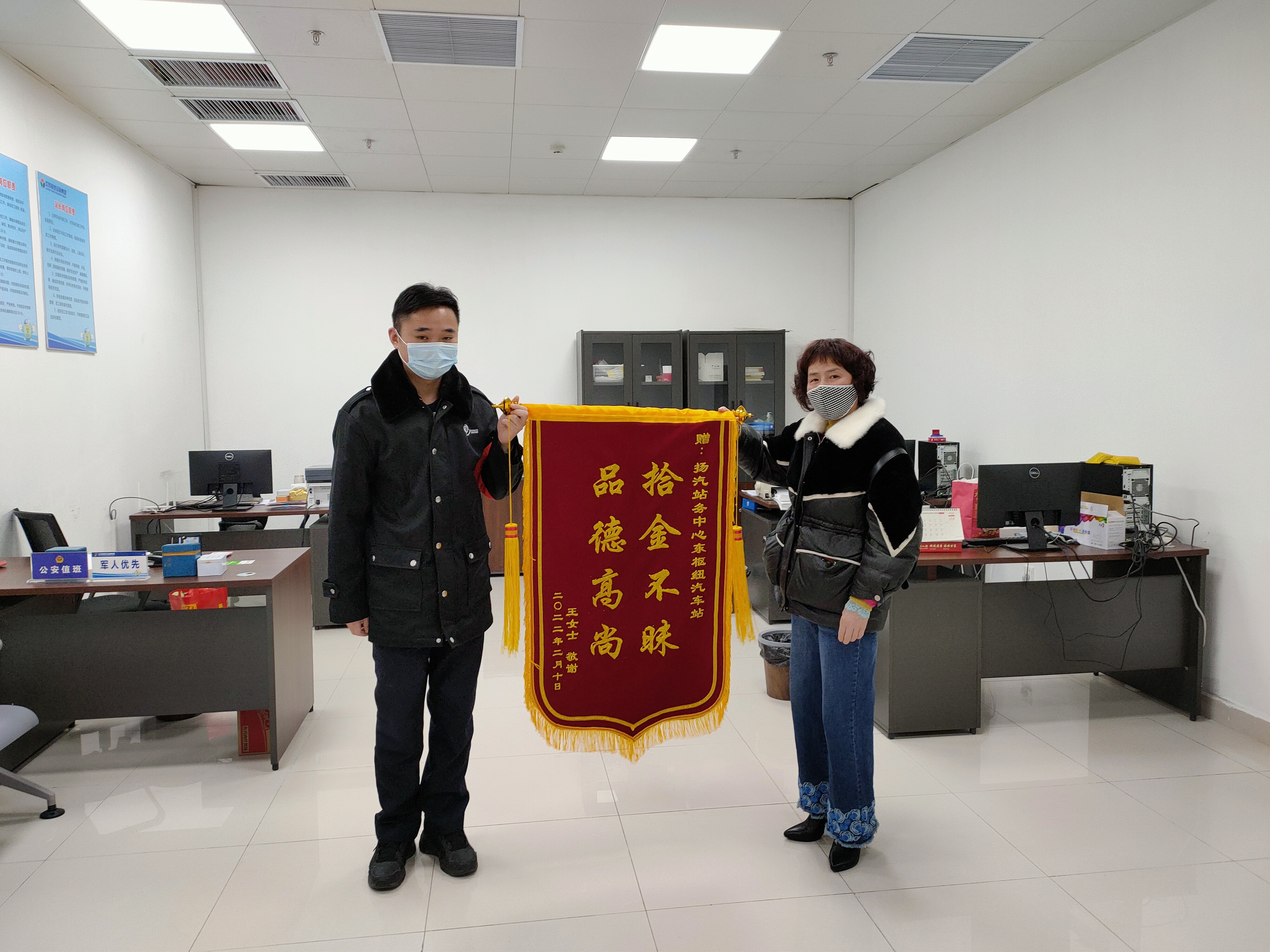 2月8日下午18:00,揚(yáng)州東樞紐汽車站至泰州南站最后一班車即將發(fā)車,臨近發(fā)車點(diǎn),一名旅客匆匆在售票處購票后帶著行李上二樓乘車,此時值班員姜衛(wèi)軍突然接到服務(wù)臺電話,售票員李玲說道,剛才有名旅客為了趕泰州班車,錢包落在了售票臺上。姜衛(wèi)軍隨即趕到現(xiàn)場,經(jīng)問詢,該班車已準(zhǔn)點(diǎn)駛出車站,在與駐站民警溝通后,確認(rèn)錢包內(nèi)裝有3000元現(xiàn)金、社?般y行卡若干,為消除旅客的焦慮情緒,姜衛(wèi)軍也是第一時間與王女士取得聯(lián)系。
