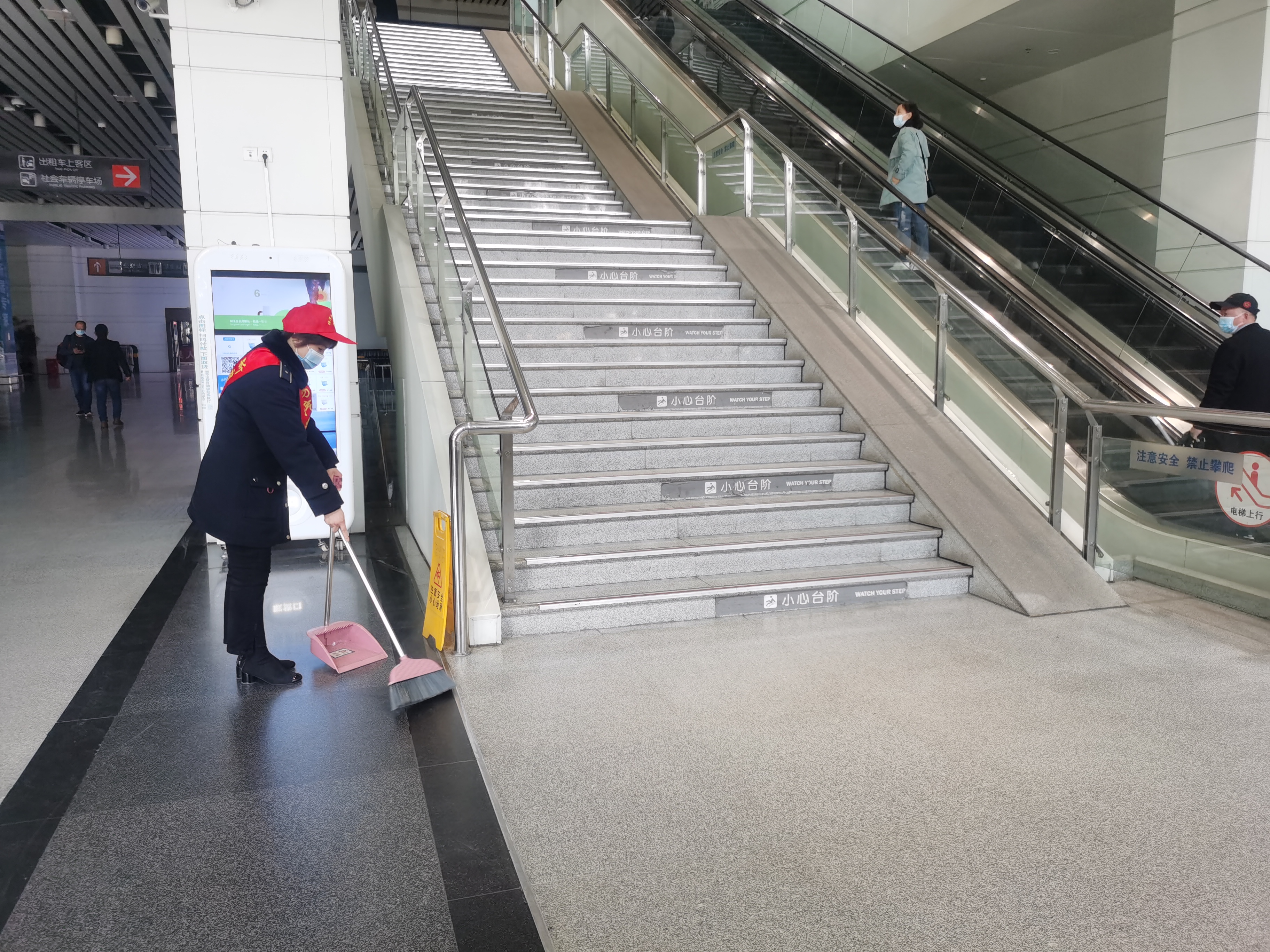 車站作為城市窗口單位之一,為保證乘車環(huán)境的衛(wèi)生,車站內實行動態(tài)清掃制度,保持地面干凈整潔,利用櫥窗展板、易拉寶等多種形式廣泛傳播社會主義核心價值觀,把“講文明樹新風”“八禮四儀”“垃圾不落地 揚州更美麗”等主題融入車站空間,更好地維護站區(qū)秩序,有序引導旅客進出站。