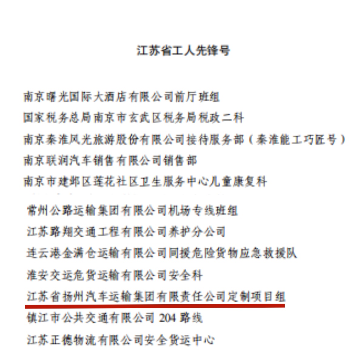 揚(yáng)汽集團(tuán)定制專線項(xiàng)目組榮獲江蘇省“工人先鋒號”稱號